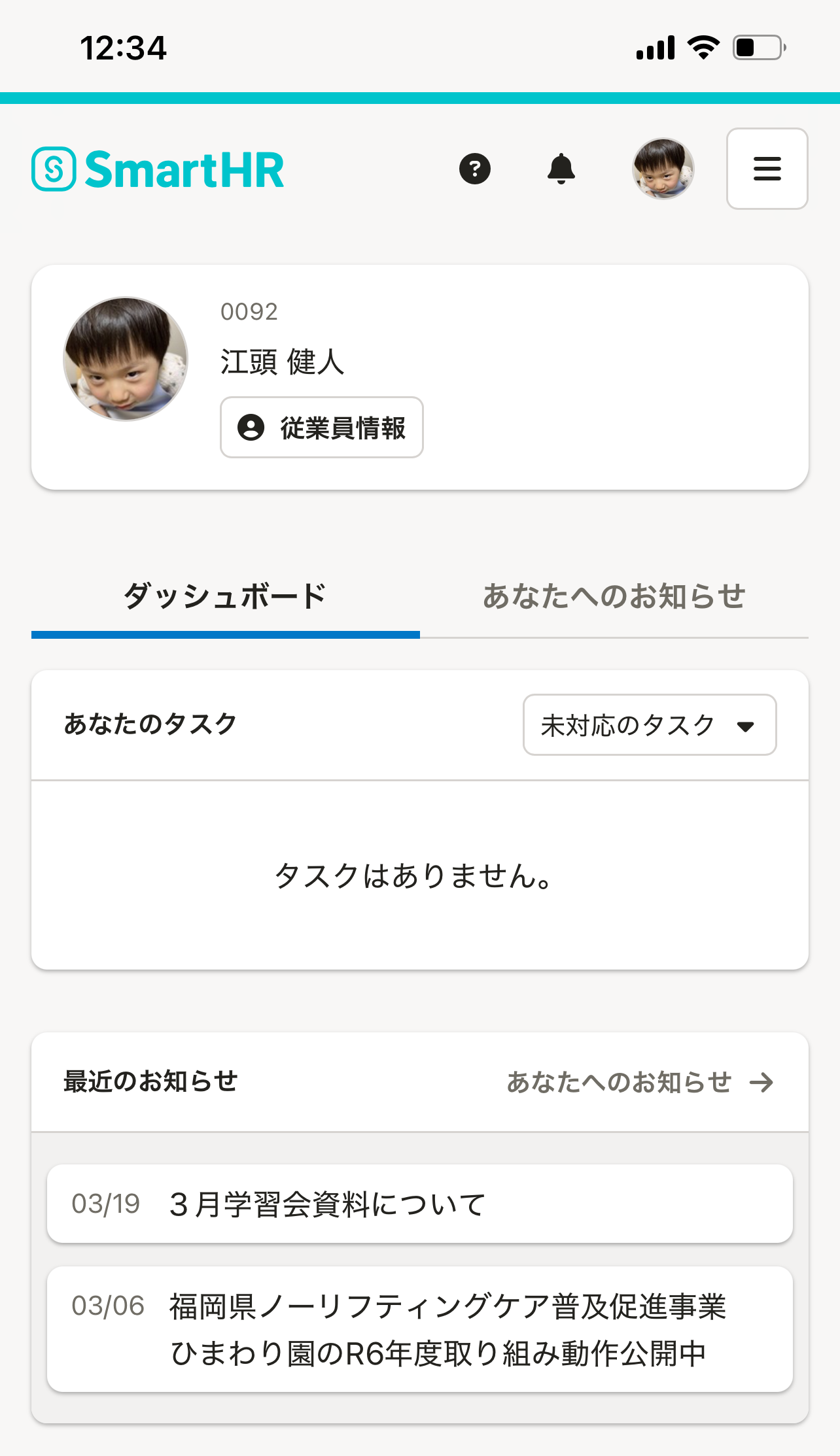 ダッシュボードにある「あなたのタスク」には、未提出・未同意のものが表示されています。