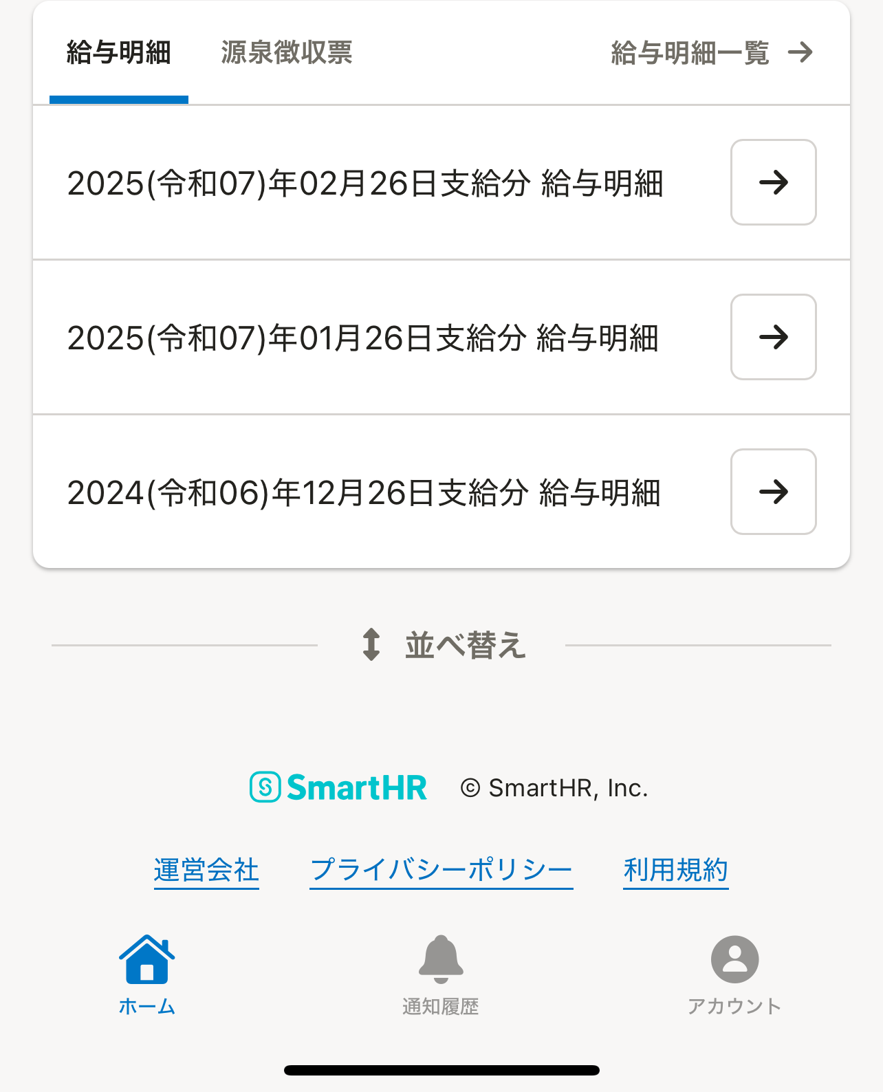 給与明細・源泉徴収票は退職してからも見られます。 源泉徴収票が紙で必要な時は申し出てください。