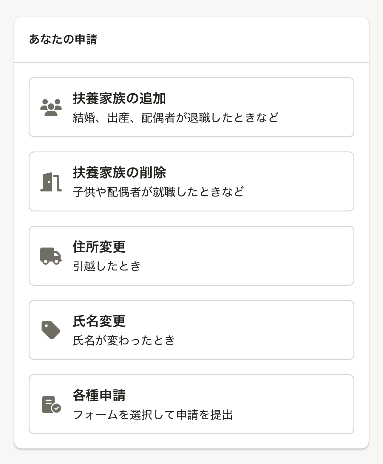 従業員情報に記載している内容に変更があった場合はこちらの申請フォームから申請してください。